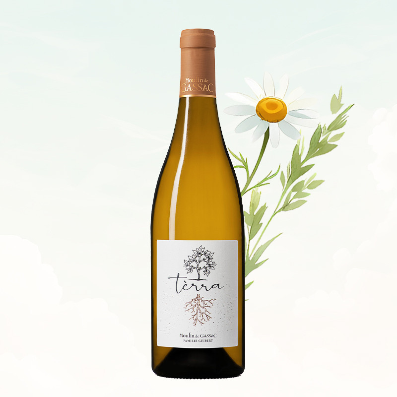 The Tèrra Blanc is a deep, rich white wine made from organically grown Grenache Blanc and Roussanne on the limestone hills of the Languedoc. It is characterized by an elegant bouquet of white flowers and citrus zest, with a fresh, well-balanced palate and a long almond-tinged finish.