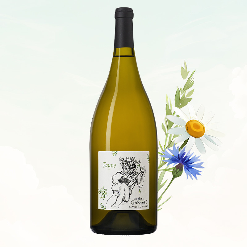 Faune est issu d’un assemblage de Chardonnay et de Viognier, offrant une robe or intense et un nez explosif sur l’abricot, la poire et les fleurs blanches. Harmonieux et équilibré, il séduit par sa bouche dense et fraîche avec une finale exotique.